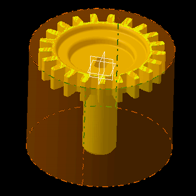 7: Create a pad from the sketch that is as high as the top face of the gearwheel and extends 6mm below the bottom of the gearwheel shaft.