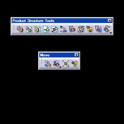 The menu bar options (such as File, Edit, Insert and Tools) remain visible on the menu but contain Assembly Design commands instead of Part Design commands.