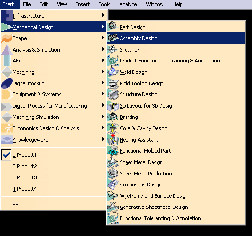 To access the Assembly workbench, select Start | Mechanical Design |Assembly Design.
