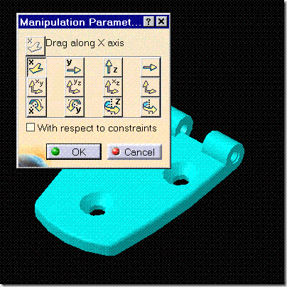 - Manipulate is useful because you can activate With respect to constraints allowing you to move only in the under-constrained direction of the component(s).