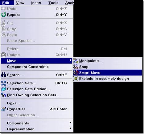- You do not have to specify both sets of geometry when using the Smart Move feature. CATIA lets you pick the first geometrical element and drag it onto another similar element before applying a constraint.